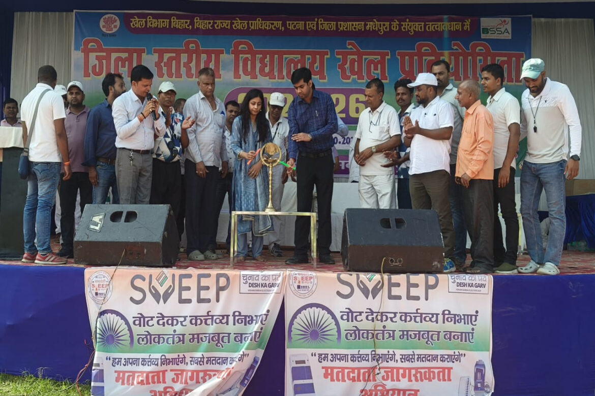 मधेपुरा, 10 अक्टूबर। खेल विभाग बिहार, पटना एवं बिहार राज्य खेल प्राधिकरण, पटना तथा जिला प्रशासन मधेपुरा के संयुक्त तत्वावधान में संत अवध कीर्ति क्रीड़ा मैदान में जिला स्तरीय विद्यालय खेल-कूद प्रतियोगिता 2025 का आज विधिवत शुभारंभ किया गया। यह प्रतियोगिता 10 से 13 अक्टूबर 2025 तक आयोजित की जाएगी।