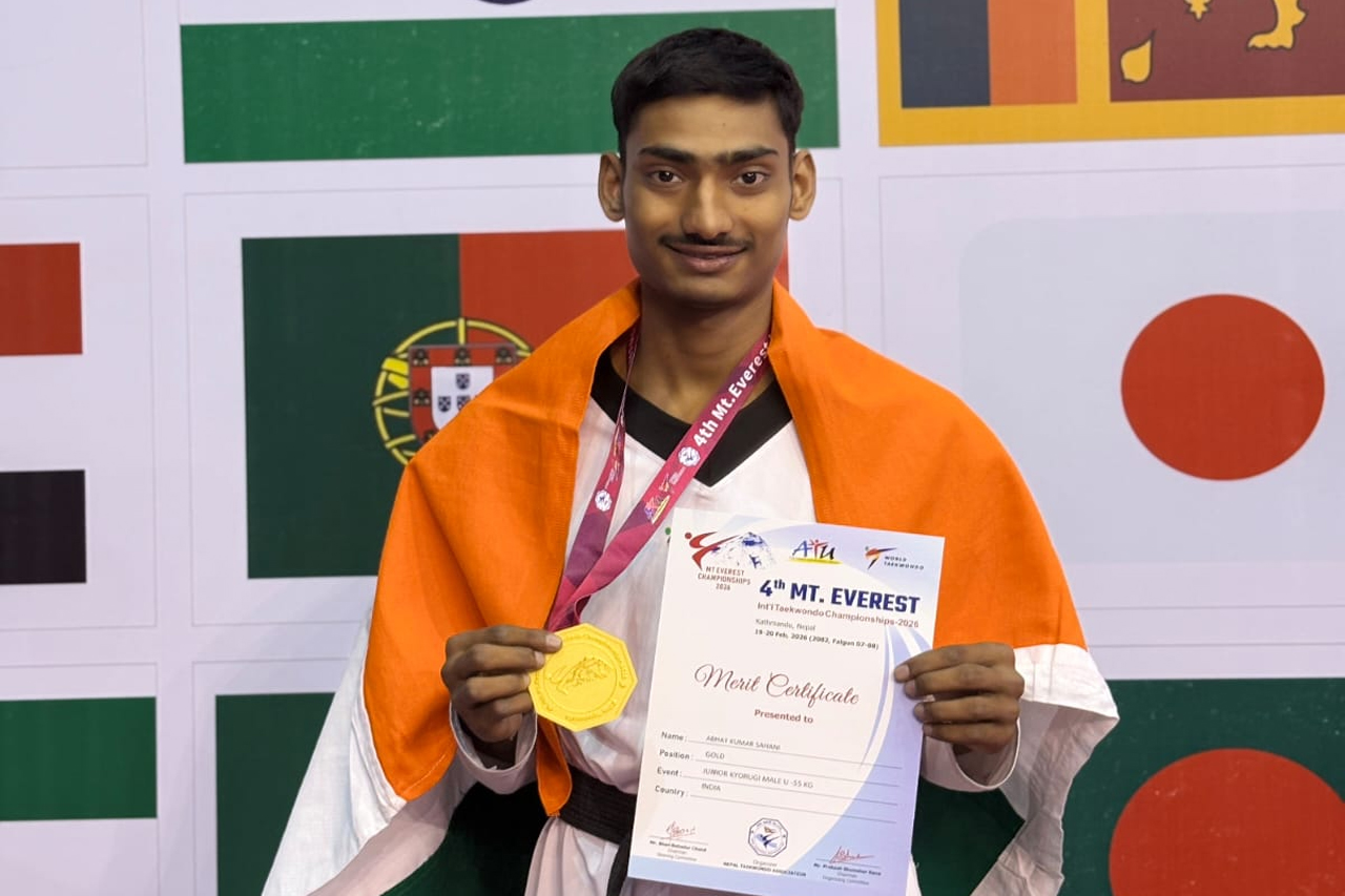 पटना, 21 फरवरी। भारतीय खेल प्राधिकरण (साई) के यूनिट एसटीसी पटना के लिए अत्यंत गर्व का विषय है कि केन्द्र के प्रशिक्षु खिलाड़ी अभय कुमार ने प्रतिष्ठित चौथी माउंट एवरेस्ट ताइक्वांडो चैम्पियनशिप में जूनियर पुरुष अंडर-55 किलोग्राम वर्ग में स्वर्ण पदक जीतकर भारत का नाम रोशन किया है। यह प्रतियोगिता काठमांडू, नेपाल में आयोजित हुई, जो एक जी-1 विश्व रैंकिंग प्रतियोगिता है।