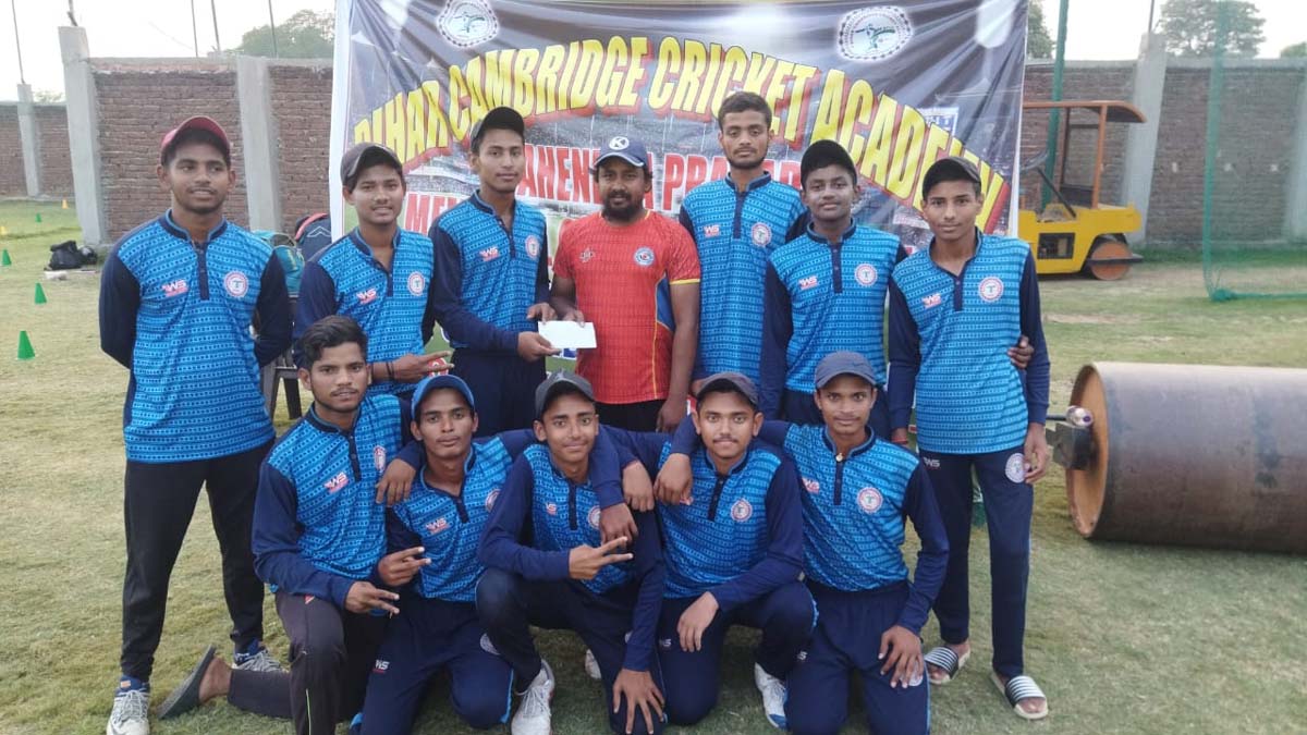 पटना। राजधानी की नामी क्रिकेट एकेडमी बिहार कैम्ब्रिज क्रिकेट एकेडमी के तत्वावधान में चल रहे महेंद्र प्रसाद मेमोरियल क्रिकेट टूर्नामेंट में रविवार को खेले गए मैच में बिहार कैम्ब्रिज क्रिकेट एकेडमी ने आदित्य के 162 रन की मदद से साहिल स्टडी सर्किल क्रिकेट क्लब को 145 रन के भारी अंतर से पराजित किया।