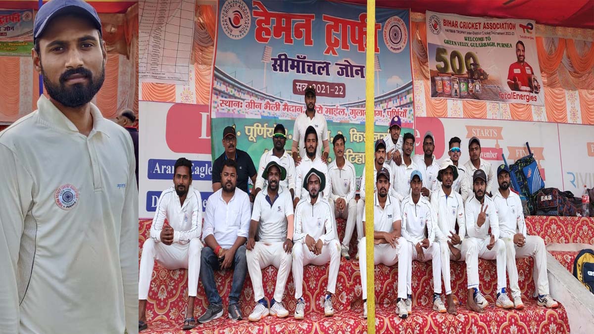 ग्रीन वैली स्टेडियम में पूर्णिया जिला क्रिकेट संघ की मेजबानी में खेले जा रहे हेमन ट्रॉफी अंतर जिला क्रिकेट टूर्नामेंट के सीमांचल जोन के अंतर्गत गुरुवार को खेले गए मुकाबले में टॉस जीत कर पहले खेलते हुए पूर्णिया ने पहले खेलते हुए 35 ओवर में 1 विकेट पर 251 रन बनाये। जवाब में अररिया की टीम 30.4 ओवर में 101 रन पर ऑल आउट हो गई। पूर्णिया के शिशिर साकेत को बेस्ट बैटर और प्लेयर ऑफ द मैच का अवार्ड दिया गया। सकलैन मुश्ताक बेस्ट बॉलर बने।