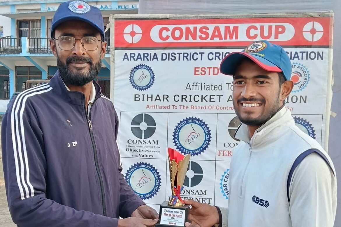 अररिया, 21 जनवरी 2026। अररिया जिला क्रिकेट लीग (कांसम ट्रॉफी) के एक रोमांचक मुकाबले में इंडस स्पोर्टिंग क्लब ‘B’ ने एम्बिशन क्रिकेट क्लब, जोकीहाट को 5 विकेट से पराजित कर सेमीफाइनल में अपनी जगह पक्की कर ली है। इस जीत के साथ इंडस ‘बी’ ने टूर्नामेंट में अपनी मजबूत दावेदारी पेश की।