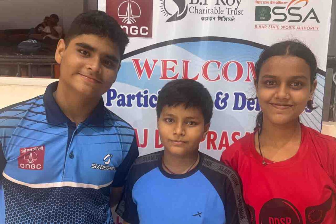 पटना, 11 जुलाई। स्थानीय पाटलिपुत्र खेल परिसर में चल रही ब्रज देव प्रसाद रॉय मेमोरियल द्वितीय बिहार राज्य रैंकिंग टेबुल टेनिस चैंपियनशिप के बालक अंडर-13 का खिताब पटना के आयुष मिश्रा ने जीता। पटना के विराट नारायण ने अंडर-11 और पटना की नाव्या लक्ष्मी ने बालिका अंडर-15 एकल खिताब अपने नाम किया।