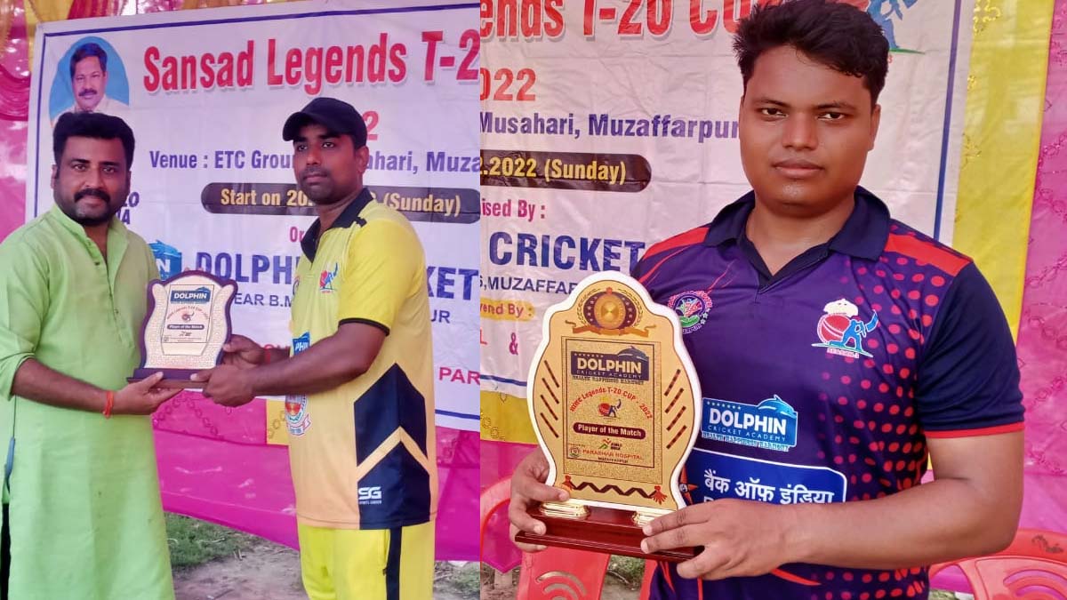 मुजफ्फरपुर। आज डॉल्फिन क्रिकेट एकेडमी के तत्वावधान में खेले गए सांसद लीजेंड्स T20 कप में बैंक ऑफ इंडिया की टीम ने जी लीटेरा की टीम को 7 विकेट से तथा दूसरे मैच में डीएवी टीचर्स की टीम ने सेंट्रल बैंक को 80 रनों से हराया। आज सुबह जी लीटेरा की टीम टॉस जीतकर पहले बल्लेबाजी करते हुए 20 ओवर में नौ विकेट पर 138 रन बनाए। विनोद ने 30 रन तथा राणा ने 35 रन बनाये। बैंक ऑफ इंडिया की ओर से monu ने 4, अरविंद ने 2 तथा अभिमन्यु ने 1 विकेट लिया।