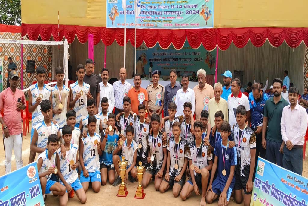 भागलपुर, 8 अक्टूबर। खेल विभाग, बिहार सरकार एवं बिहार राज्य खेल प्राधिकरण,पटना के संयुक्त तत्वावधान में जिला प्रशासन, भागलपुर की मेजबानी में मंगलवार को यहां संपन्न बिहार राज्य अंतर जिला विद्यालय अंडर-14 बालक वॉलीबॉल प्रतियोगिता का खिताब बेगूसराय ने जीता। फाइनल मुकाबले में बेगूसराय ने सीधे सेटों में गोपालगंज को 25-19,25-23,25- 21 से हराया।