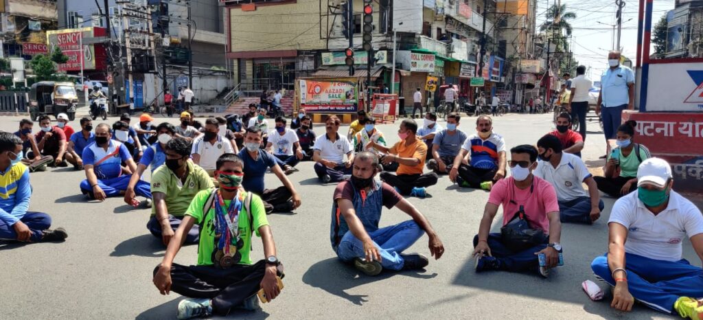 पटना। शनिवार ( 29 अगस्त) को खेल दिवस पर बिहार के खिलाड़ी बिहार प्लेयर्स एसोसिएशन के अध्यक्ष मृत्युंजय तिवारी के नेतृत्व में विभिन्न मांगों को लेकर सड़क पर प्रदर्शन कर अपना विरोध जताया।