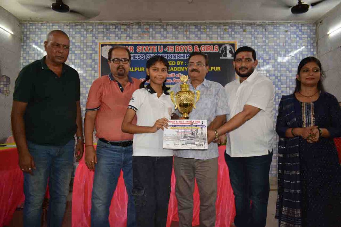 बालिकाओं के वर्ग में शीर्ष पर चल रही पटना की शालिनी का मैच प्रतीक्षा के साथ अनिर्णीत समाप्त हुआ जबकि दो नम्बर बोर्ड पर काले मोहरों सर खेल रही भोजपुर की अर्पिता ने प्रशंसा को पराजित कर छह में साढ़े पांच अंक अर्जित कर खिताब जीत लिया। बाजी ड्रा कर पांच अंको के साथ रही शालिनी को उपविजेता का खिताब मिला।