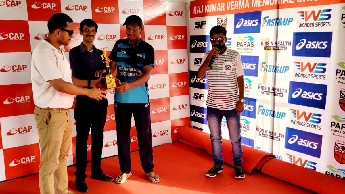 सीएपी राइडर्स की ओर आदित्य राज झा को प्लेयर ऑफ द मैच व बेस्ट बॉलर घोषित किया गया। आलोक जायसवाल को बेस्ट बैट्समैन घोषित किया। पुरस्कार विनोद ने प्रदान किया।
