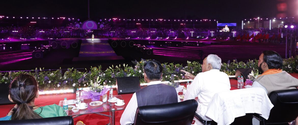 पटना, 4 मई। पटना के पाटलिपुत्र खेल परिसर में रविवार 4 मई को खेलो इंडिया यूथ गेम्स के सातवें संस्करण का शानदार आगाज हुआ। प्रधानमंत्री नरेन्द्र मोदी ने वीडियो संदेश के माध्यम से खेलो इंडिया यूथ गेम्स के शुभारंभ की घोषणा की। साथ ही मुख्यमंत्री श्री नीतीश कुमार ने कंकड़बाग स्थित पाटलिपुत्र खेल परिसर में खेलो इंडिया यूथ गेम्स 2025 का मशाल प्रज्ज्वलित कर इसका उद्घाटन किया।