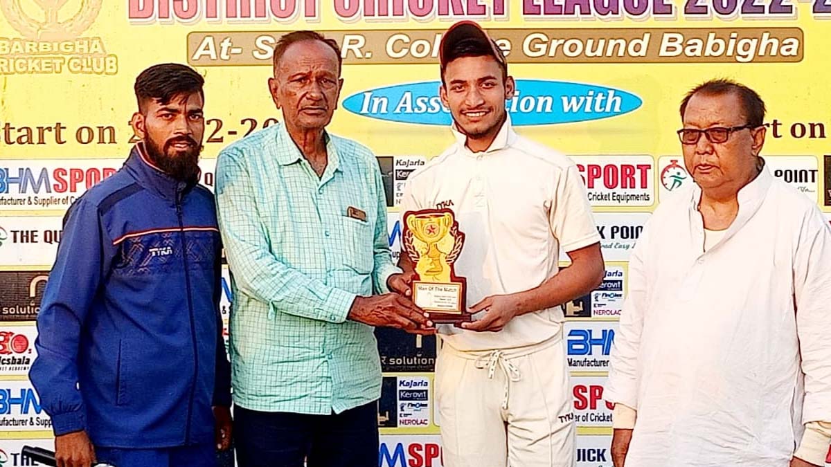 विजेता टीम के अमन राज को मैन ऑफ द मैच एवं बरबीघा के सुशान्त को सांत्वना पुरस्कार दिया गया इसके पूर्व बरबीघा कॉलेज के प्राचार्य श्री नवल प्रसाद ने खिलाड़ियों से परिचय प्राप्त कर मैच का शुभारंभ किया अंपायर का कार्य मिथलेश कुमार और प्रह्लाद पासवान ने किया मैच SKR कॉलेज के ग्राउंड में खेला गया।