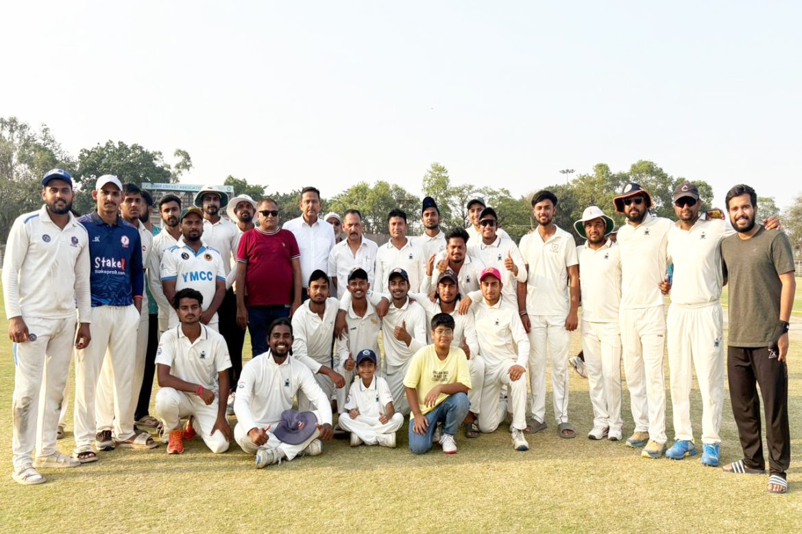 जवाब में वाईएमसीसी की टीम दाएं हाथ के तेज गेंदबाज रोहित राज की घातक गेंदबाजी के आगे 26.4 ओवर में केवल 141 रन बनाकर सिमट गई। रोहित राज ने 6 ओवर में 41 रन देकर 5 विकेट हासिल किए। ऋषभ राज ने भी उम्दा गेंदबाजी करते हुए केवल पांच रन देकर तीन विकेट अपने नाम किए। दो विकेट अभिषेक सिंह ने भी प्राप्त किया।