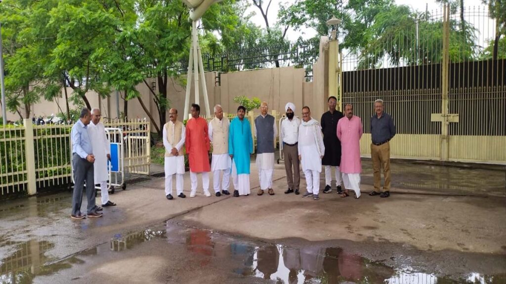 एक दिन पूर्व जेसीए स्टेडियम मेंं साथियों संग झंडोत्तोलन के मौके पर अमिताभ चौधरी.