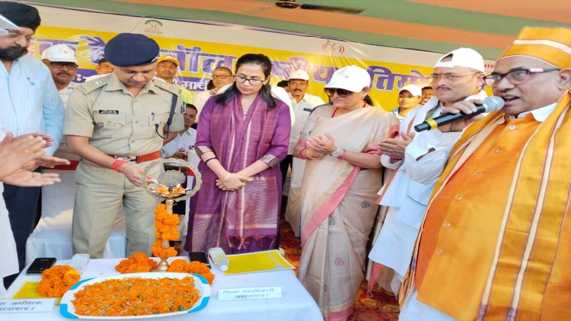 स्कूली बच्चों ने स्वागत गीत की प्रस्तुति की वही मंत्रोच्चार के बीच खेल मैदान का पूजन जिलाधिकारी ने सभी के मौजूदगी में किया।