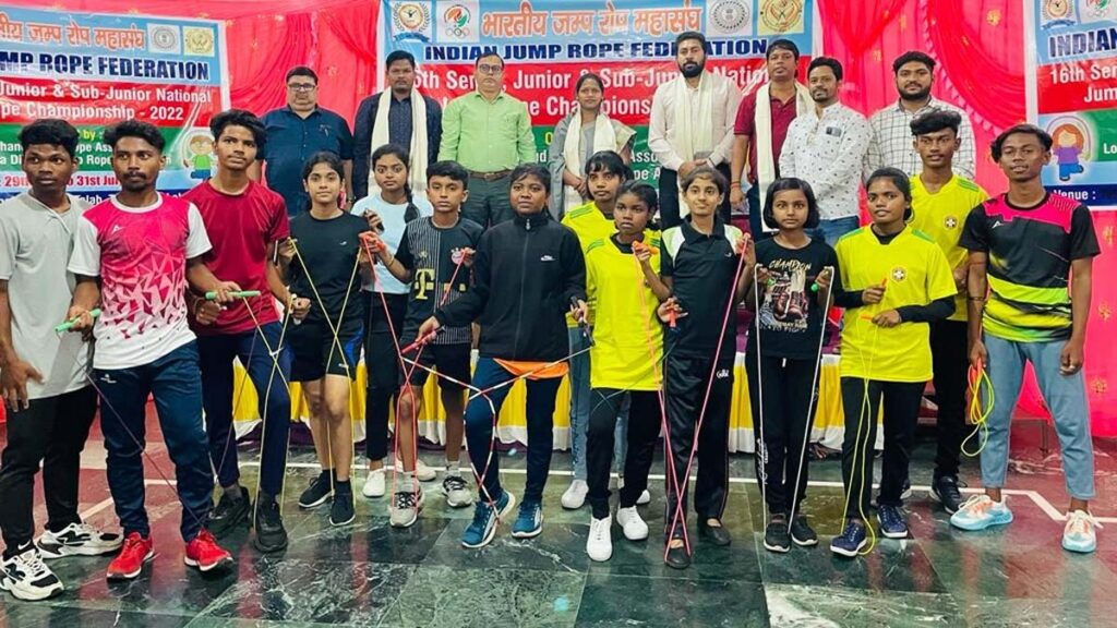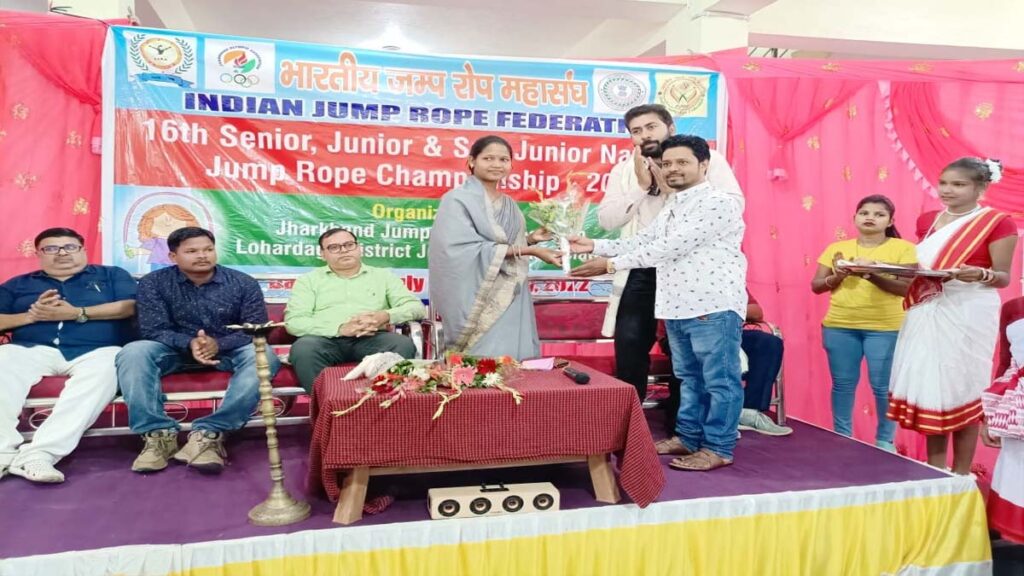 लोहरदगा। लोहरदगा साहू भवन मे भारतीय जम्प रोप महासंघ के तत्वावधान मे नेशनल जंप रोप प्रतियोगिता का शुभारंभ जिला परिषद अध्यक्ष रीना कुमारी, कार्यपालक पदाधिकारी देवेंद्र कुमार नगरपरिषद, संदीप कुमार गुप्ता सदस्य जिला परिषद, बिजय कुमार सिटी मैनेजर,अजित भगत कुश्ती संघ जिला सचिव ने दीप प्रज्जवलित कर किया।
