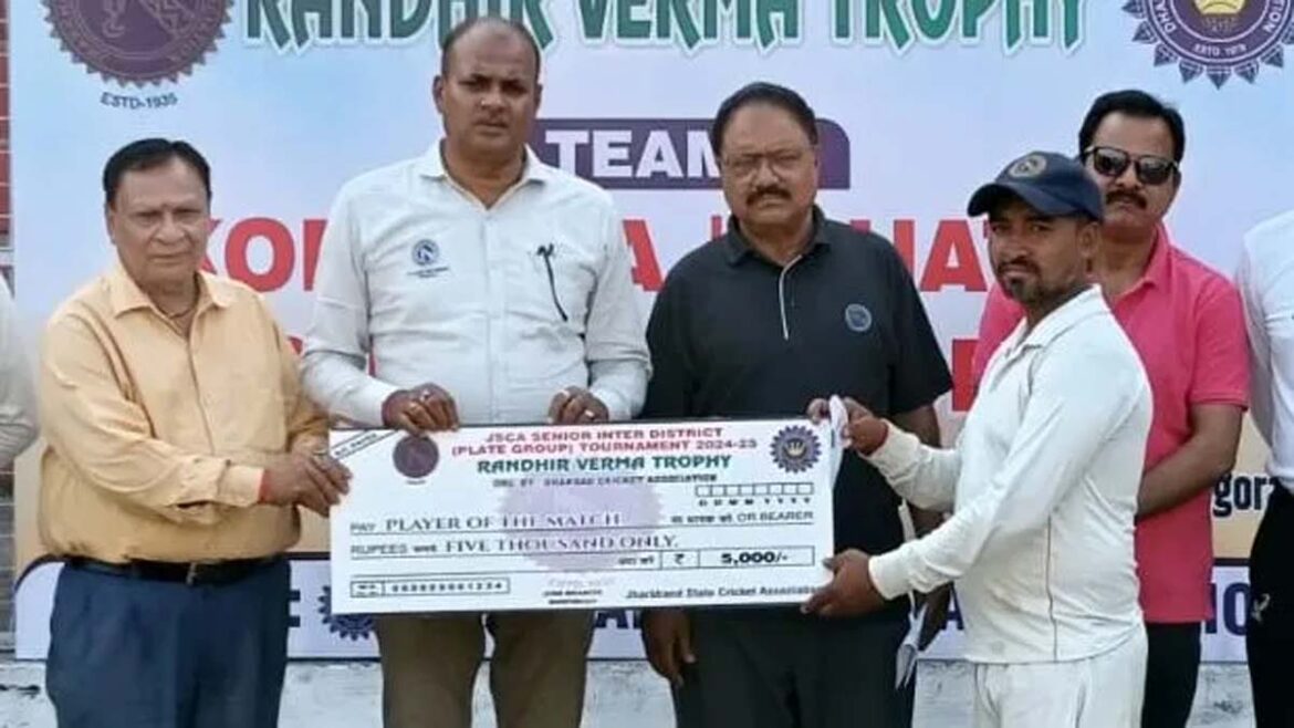 रोहित भारती ने 60, भोला यादव ने 43, कुमार सुनील कश्यप ने 23, विकास कुमार यादव ने 14 और मोहित कुमार ने 12 रन अपनी टीम के लिए जोड़े। उधर चतरा के सोनू सिंह ने 35 पर चार, बलवंत कुमार ने 23 रन देकर तीन जबकि आशुतोष भारती ने 32 देकर दो विकेट लिए।