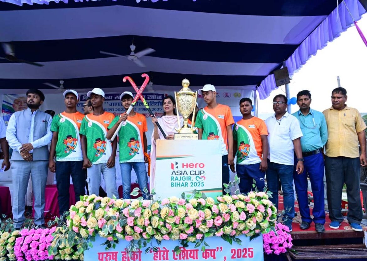 पटना,18 अगस्त। बिहार में पहली बार 29 अगस्त से 7 सितंबर तक राजगीर में होने वाली हीरो एशिया कप पुरुष हॉकी चैंपियनशिप राजगीर 2025 बिहार के आधिकारिक शुभंकर और ट्रॉफी के अनावरण के बाद 17 अगस्त को मुख्यमंत्री नीतीश कुमार ने हरी झंडी दिखा कर ट्रॉफी गौरव यात्रा का शुभारंभ किया था।