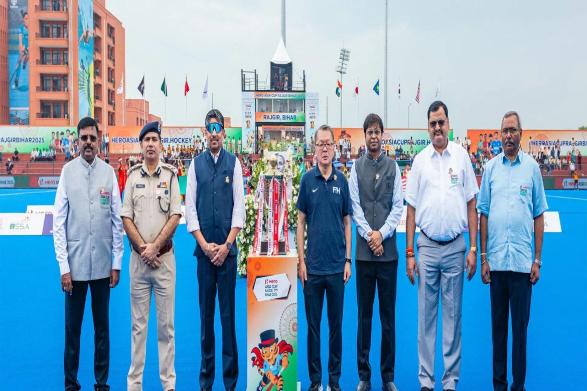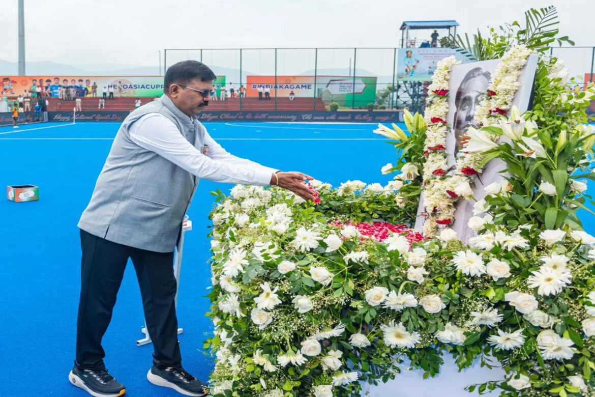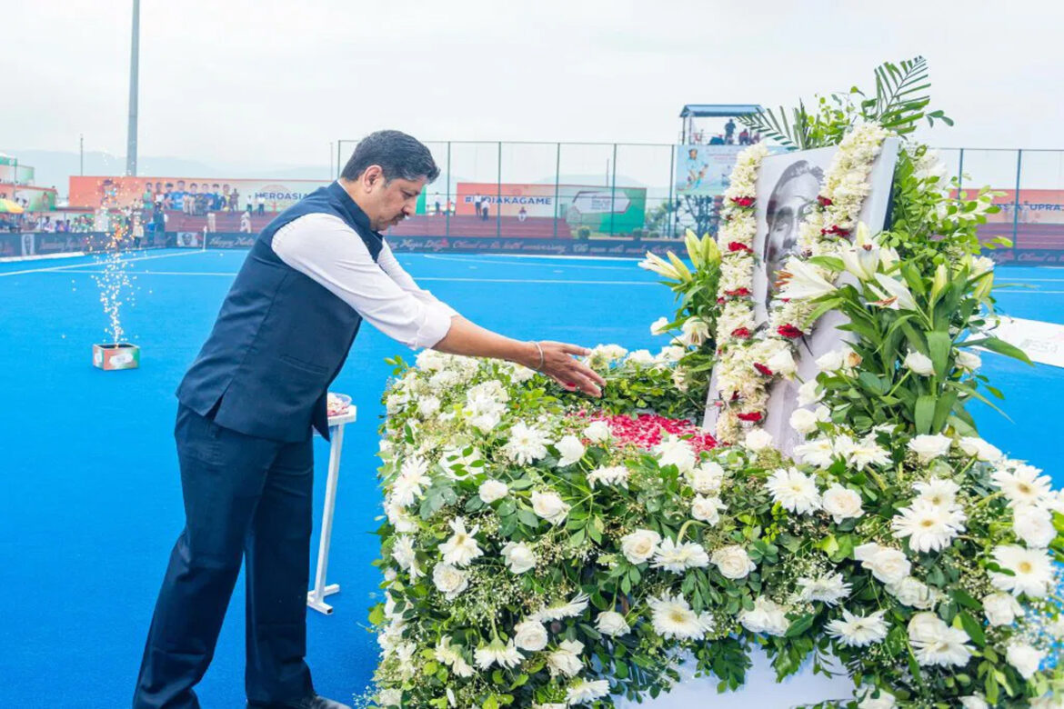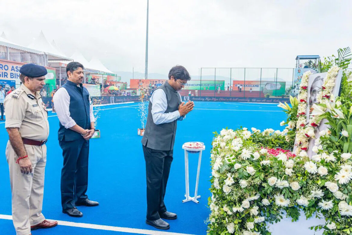 राजगीर, 29 अगस्त। हॉकी के जादूगर मेजर ध्यानचंद की जयंती जिसे पूरे देश में राष्ट्रीय खेल दिवस के रूप में मनाया जाता है के अवसर पर हीरो एशिया कप राजगीर 2025 के उद्घाटन मैच (मलेशिया बनाम बांग्लादेश) से पूर्व विशेष श्रद्धांजलि दी गई। इस मौके पर एशियाई हॉकी महासंघ के अध्यक्ष फुमियो ओगुरा, बिहार राज्य खेल प्राधिकरण (BSSA) के महानिदेशक एवं मुख्य कार्यकारी अधिकारी रवीन्द्रन शंकरन (IPS), पटना ज़ोन के पुलिस महानिरीक्षक श्री जितेन्द्र राणा (IPS), हॉकी इंडिया अध्यक्ष डॉ. दिलीप तिर्की, एशियाई हॉकी महासंघ उपाध्यक्ष एवं हॉकी इंडिया महासचिव भोला नाथ सिंह, हॉकी इंडिया कोषाध्यक्ष एवं तमिलनाडु हॉकी यूनिट अध्यक्ष शेखर जे मनोहरन तथा हॉकी इंडिया महानिदेशक कमांडर आर.के. श्रीवास्तव उपस्थित रहे।