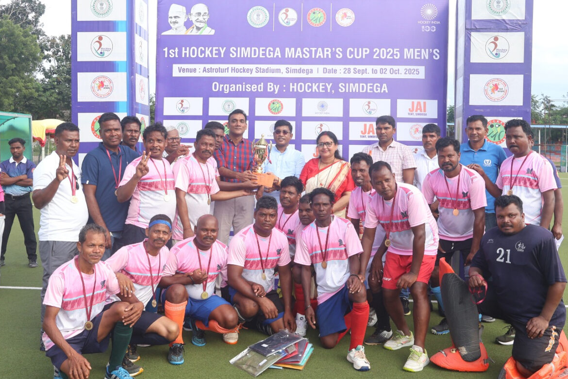 सिमडेगा (झारखंड), 2 अक्टूबर। झारखंड के खेल इतिहास में पहली बार 40 वर्ष से अधिक उम्र के खिलाड़ियों के लिए आयोजित 1st हॉकी सिमडेगा मास्टर्स कप 2025 का समापन 2 अक्टूबर को एस्ट्रोटर्फ हॉकी स्टेडियम, सिमडेगा में हुआ। रोमांचक फाइनल मुकाबले में रेंगारी की टीम ने मरियमपुर को 3-1 से हराकर खिताब अपने नाम किया। वहीं बांसपहार कोचेडेगा ने सिमडेगा पूर्वी को 2-0 से हराकर तीसरा स्थान हासिल किया।