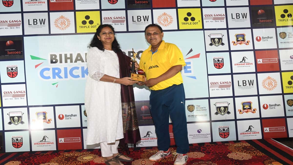 पटना। राजेश कुमार सिन्हा उर्फ उस्ताद (पांच विकेट) के शानदार खेल की बदौलत बिहार स्टेट पॉवर होल्डिंग कंपनी लि. ( बीएसपीएचसीएल, BSPHCL) की टीम बिहार कॉरपोरेट क्रिकेट लीग (Bihar Corporate T20 Cricket League) के फाइनल में प्रवेश किया। शनिवार को खेले गए मैच में BSPHCL ने बासा को 8 विकेट से पराजित किया। विजेता टीम के राजेश कुमार सिन्हा को प्लेयर ऑफ द मैच का पुरस्कार नीलिमा चौधरी (डायरेक्टर जीपीएफ) ने प्रदान किया।