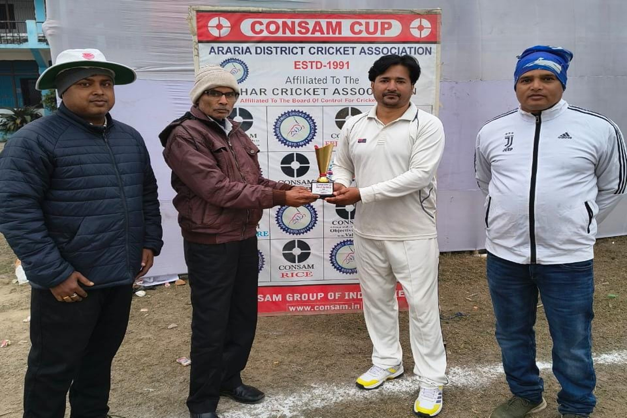 अररिया, 28 दिसंबर। अररिया कॉलेज स्टेडियम में अररिया जिला क्रिकेट संघ द्वारा आयोजित भागीरथी गंगा जिला क्रिकेट लीग (कांसम ट्रॉफी) के तहत खेले गए मुकाबले में इंडस स्पोर्टिंग क्लब ए ने प्रशांत क्रिकेट क्लब को 110 रनों से एकतरफा पराजित किया। शानदार गेंदबाजी प्रदर्शन के लिए निसार अहमद को मैन ऑफ द मैच चुना गया।