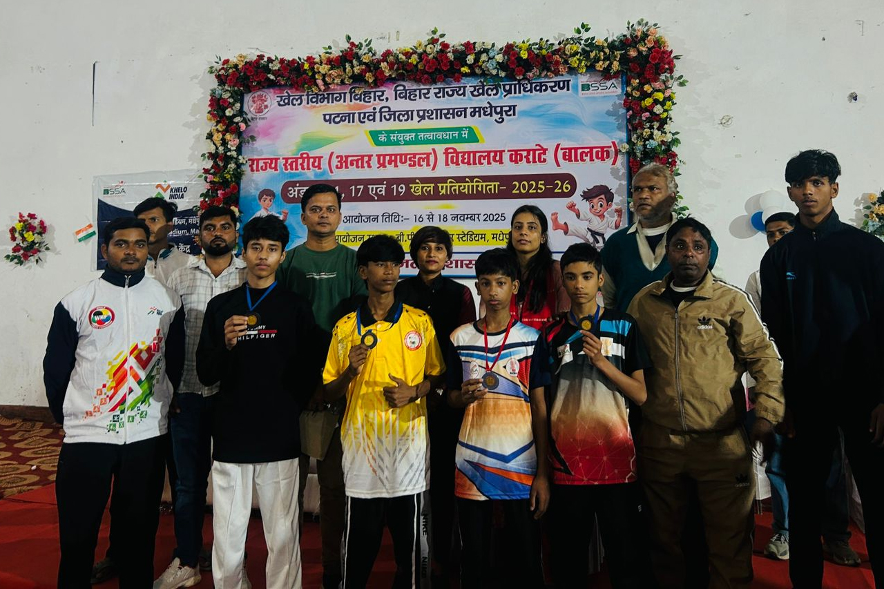 मधेपुरा, 17 नवंबर। खेल विभाग बिहार, बिहार राज्य खेल प्राधिकरण पटना एवं जिला प्रशासन मधेपुरा के संयुक्त तत्वावधान में आयोजित राज्य स्तरीय विद्यालय कराटे बालक प्रतियोगिता में दूसरे दिन पटना प्रमंडल ने शानदार प्रदर्शन करते हुए छह वर्गों में पाँच स्वर्ण पदक जीतकर पदक तालिका में स्पष्ट बढ़त बना ली है। 16 से 18 नवंबर तक चल रही इस प्रतियोगिता का संचालन उपाधीक्षक शारीरिक शिक्षा सुश्री आम्रपाली कुमारी की देखरेख में किया जा रहा है। अंडर-14, 17 एवं 19 बालक वर्ग के मुकाबलों की विस्तृत जानकारी कार्यक्रम संचालक एवं शारीरिक शिक्षा स्वास्थ्य अनुदेशक अरुण कुमार ने दी।