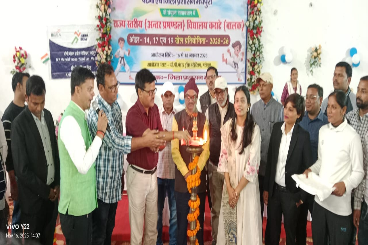 मधेपुरा, 16 नवंबर। खेल विभाग, बिहार, बिहार राज्य खेल प्राधिकरण, पटना और जिला प्रशासन मधेपुरा के संयुक्त तत्वावधान में आयोजित राज्य स्तरीय विद्यालय कराटे (बालक) प्रतियोगिता का आज भव्य उद्घाटन किया गया। यह प्रतियोगिता 16 से 18 नवंबर तक चलेगी।