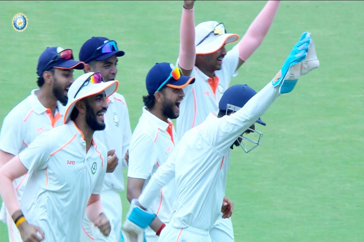 विदर्भ ने पहले दिन पांच विकेट पर 280 रन बनाए थे। दूसरे दिन उन्होंने 17.4 ओवर में 62 रन जोड़ते हुए पांच विकेट गंवाए और कुल स्कोर 342 रन तक पहुँचाया। विदर्भ की ओर से अथर्व तायडे ने 143 रन की बेहतरीन पारी खेली।