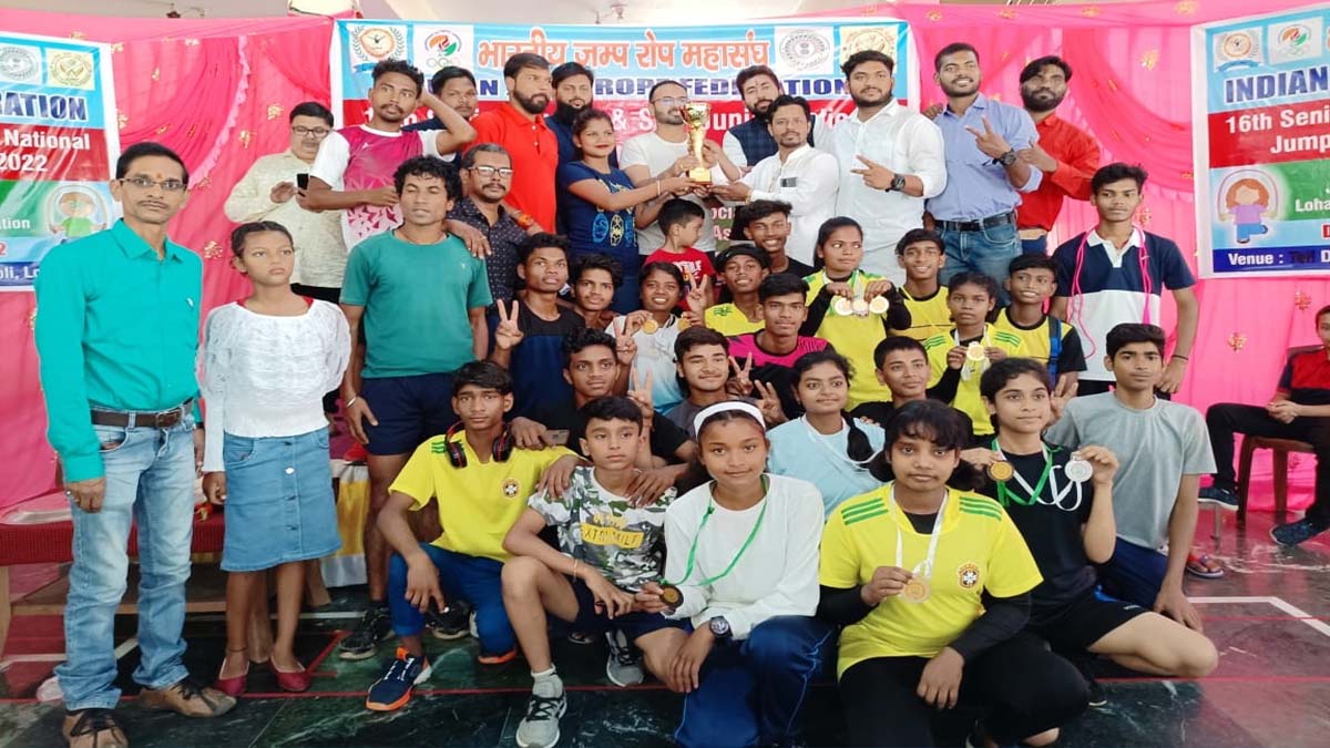 लोहरदगा। लोहरदगा साहू भवन मे भारतीय जम्प रोप का राष्ट्रीय प्रतियोगिता का समापन रविवार को हो गया। कार्यक्रम मे मुख्य अतिथि के रूप में उपायुक्त लोहरदगा डॉ. वाघमारे प्रसाद कृष्ण ने कहा कि जम्प रोप जिसे हम बचपन मे रस्सी कूद कहते थे केवल खेलने और यूँ ही जम्प करने के लिए खेला जाता था, लेकिन आज जानकारी हुई बल्कि जम्प रोप का खेल देख कर बहुत रोमांचित हूँ। इस खेल में इतनी कौशल और विधाएँ होती हैं। बच्चों को शारीरिक विकास के साथ साथ मानसिक विकास भी होता है। संगीत की धुन में नृत्य कौशल भी किया जा सकता है और जिम्नास्ट भी होता है।