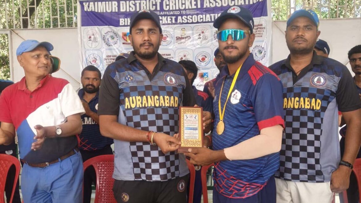 निशांत सिंह को शानदार गेंदबाजी के लिए प्लेयर ऑफ द मैच की ट्रॉफी औरंगाबाद जिला क्रिकेट संघ के सचिव उज्जवल सिंह ने प्रदान किया।