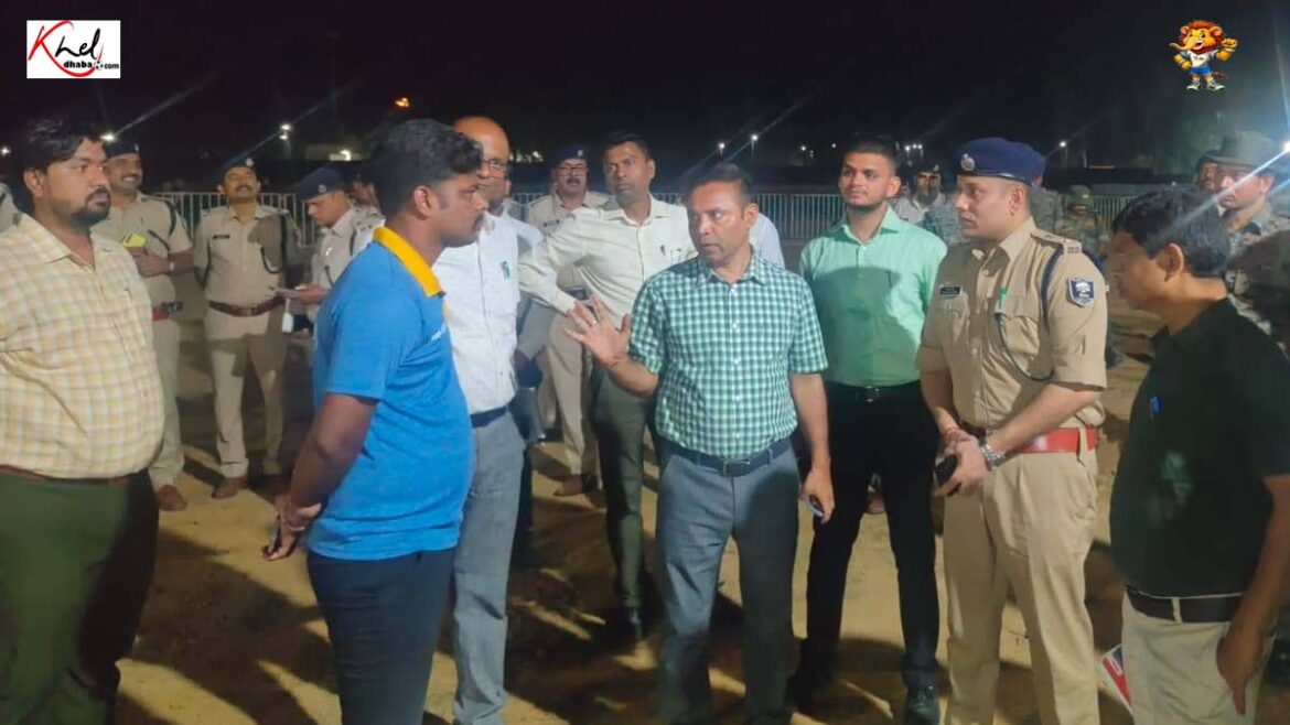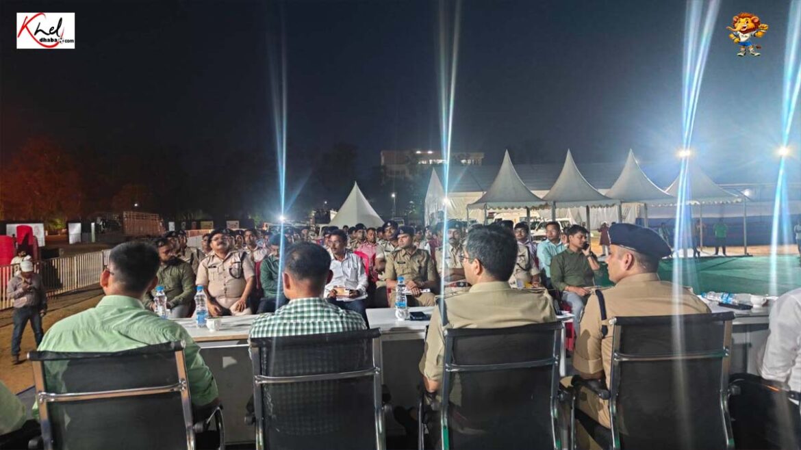 ब्रीफिंग के उपरांत जिलाधिकारी एवं वरीय पुलिस अधीक्षक द्वारा वरीय पदाधिकारियों के साथ खेल ग्राउंड की तैयारी का निरीक्षण किया।