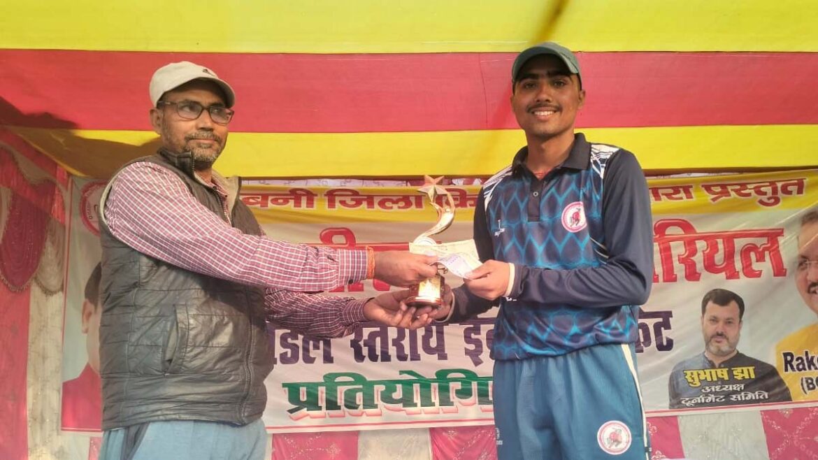 मैन ऑफ द मैच का पुरस्कार बेनीपट्टी के अभिषेक कुमार झा को बेलाही के समाजसेवी ललित झा बड़ा बाबू के हाथ से कप और पुरस्कार राशि देकर किया गया।