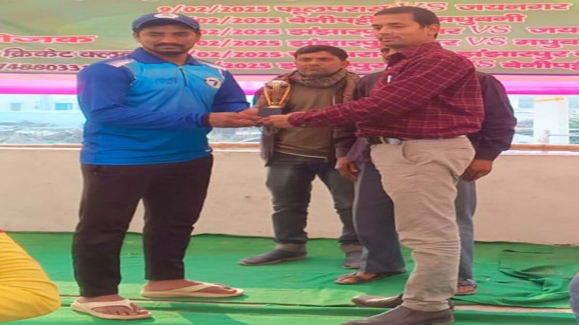 मैन ऑफ द मैच का पुरस्कार अविनाश आर्यन को झंझारपुर नगर परिषद स्वक्षता पदाधिकारी दीपक कुमार के हाथों नकद व ट्रॉफी प्रदान किया गयाl