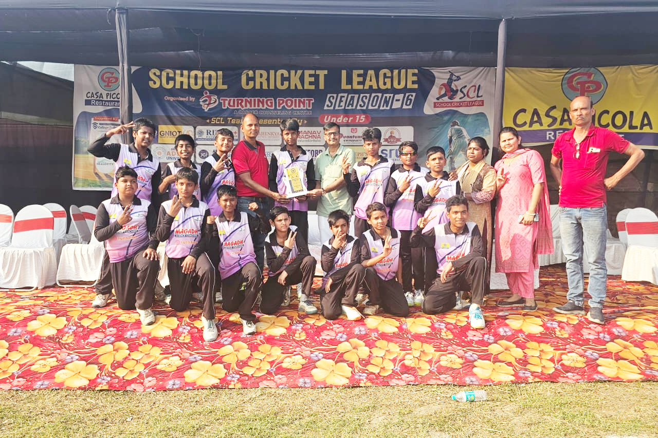 पटना, 29 मार्च। टर्निंग प्वायंट के तत्वावधान में खेली जा रही कासा पिकोला स्कूल क्रिकेट लीग अंडर—12 सीजन—1 का खिताब मगध तूफांस ने जीत लिया है। फाइनल में मगध तूफांस ने आईआईटी पैंथर्स को 21 रन से पराजित किया।