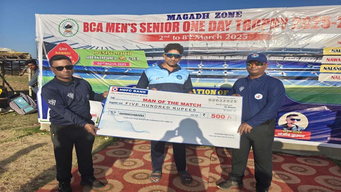 इस टूर्नामेंट के मगध जोन के अंतर्गत खेले गए दूसरे मुकाबले में नवादा ने पहले बैटिंग करते हुए निर्धारित 50 ओवर में 6 विकेट पर 347 रन का स्कोर खड़ा किया। जवाब में गया ने 43.4 ओवर में 3 विकेट पर 352 रन बना कर मैच अपने नाम कर लिया। विजेता टीम के मंगल महरौर को प्लेयर ऑफ द मैच का पुरस्कार दिया गया।