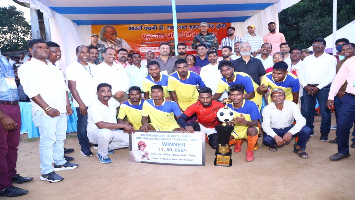 रांची। डॉ. रामदयाल मुण्डा क्रीड़ा केंद्र एवम रूम्बुल के तत्वावधान में डॉ. रामदयाल मुण्डा स्टेडियम, रांची में संपन्न 8वीं पद्मश्री डॉ. रामदयाल मुण्डा चैलेंज ट्रॉफी फुटबॉल प्रतियोगिता 2022 का खिताब मेकॉन ने जीता। फाइनल मैच में मेकॉन ने बी.पी.एस.एस. दुबलिया को 1-0 से हराया। विजेता टीम मेकॉन की ओर से लक्ष्मीकांत ने पहला गोल किया।