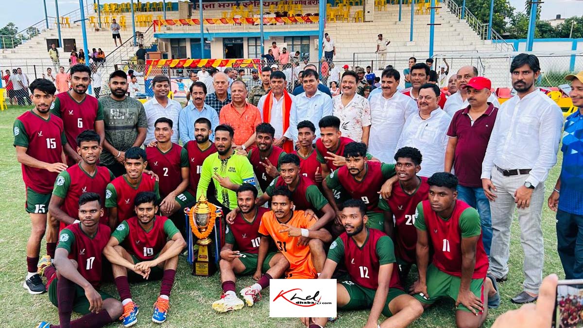 तेघड़ा (बेगूसराय), 27 जून। पटना की फुटबॉल टीम ने एक बार फिर अपना दबदबा साबित करते हुए मोइनुल हक कप फॉर बिहार राज्य सीनियर फुटबॉल चैंपियनशिप का खिताब अपने नाम किया। यमुना भगत स्टेडियम में खेले गए फाइनल मुकाबले में पटना ने पूर्वी चंपारण को 3-0 से हराकर शानदार जीत दर्ज की। इस मुकाबले के नायक बने जर्सी नंबर 12 मोहम्मद तौहिद, जिन्होंने हैट्रिक करते हुए दर्शकों को झूमने पर मजबूर कर दिया।