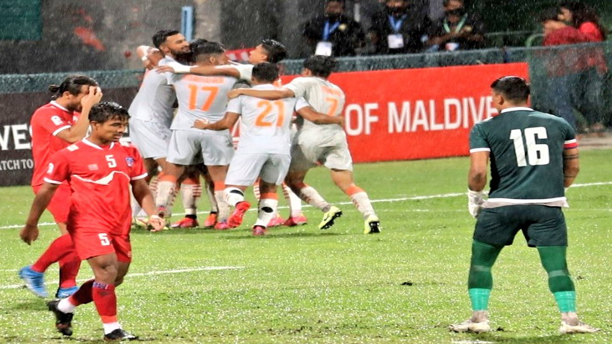 मनवीर सिंह भी 52वें मिनट में गोल करने के करीब पहुंचे लेकिन बायें पैर से उनका शॉट नेपाली गोलकीपर ने रोक दिया। भारत के लिये तीसरा गोल 90वें मिनट में समाद ने किया।