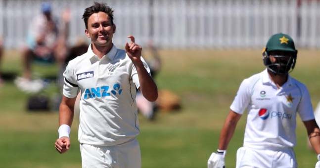 माउंट मौंगानुई। न्यूजीलैंड ने 4.3 ओवर शेष रहते पाकिस्तान के संघर्ष पर काबू पा लिया और पहला टेस्ट बुधवार को 101 रन से जीतकर दो टेस्टों की सीरीज में 1-0 की बढ़त बना ली।