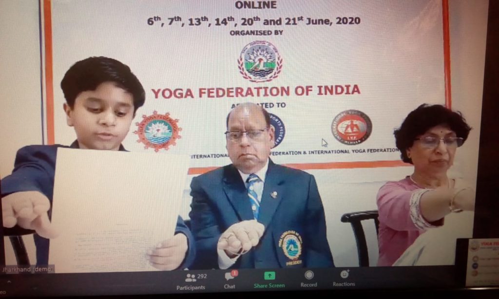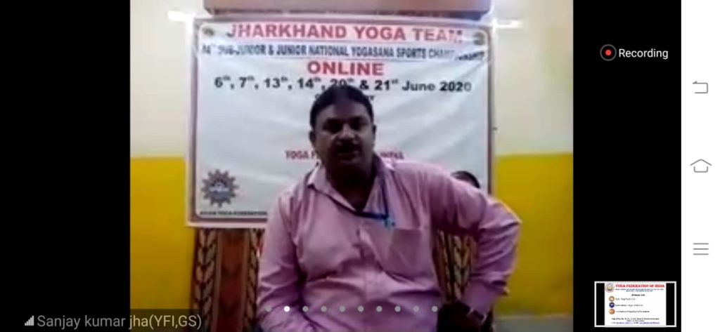 रांची । 44वीं राष्ट्रीय ऑनलाइन सब जूनियर और जूनियर योग स्पोर्ट्स प्रतियोगिता शनिवार से शुरू हुआ। प्रतियोगिता का शुभारंभ फेडरेशन के अध्यक्ष अशोक कुमार अग्रवाल ने दीप प्रज्वलित कर किया। समारोह के मुख्य अतिथि राज सभा सांसद अनिल अग्रवाल ने प्रतिभागियों को बधाई देते हुए बेहतर प्रदर्शन करने का शुभकामनाएं दी। मौके पर फेडरेशन के सभी पदाधिकारियों ऑनलाइन के माध्यम से से अपनी उपस्थिति दर्ज की । पहली बार आयोजित इस ऑनलाइन प्रतियोगिता में पूरे देश के लगभग 900 खिलाड़ी भाग ले रहे हैं। प्रतियोगिता के शुभारंभ में प्रतिभागियों द्वारा योग का प्रदर्शन किया गया किया गया। झारखंड की अनुष्का कर्मकार ने भी योग का प्रदर्शन कर लोगों का मन मोह लिया। योग फेडरेशन ऑफ इंडिया के महासचिव संजय कुमार झा ने उद्घाटन समारोह में धन्यवाद ज्ञापन किया । उन्होंने बताया कि कोरोना महामारी को लेकर पहली बार प्रतियोगिता का आयोजन ऑनलाइन किया जा रहा है। फेडरेशन के अध्यक्ष अशोक कुमार अग्रवाल एवं इन्दुअग्रवाल की देखरेख में ऑनलाइन प्रतियोगिता शुरू हुआ। प्रतियोगिता विभिन्न आयुवर्गों में छह, सात, 13, 14, 20 और 21 जून को होगी। प्रतियोगिता के पहले दिन 8 से 10 एवं 10 से 12 वर्ष के प्रतिभागियों का प्रतियोगिता आयोजित की गई।