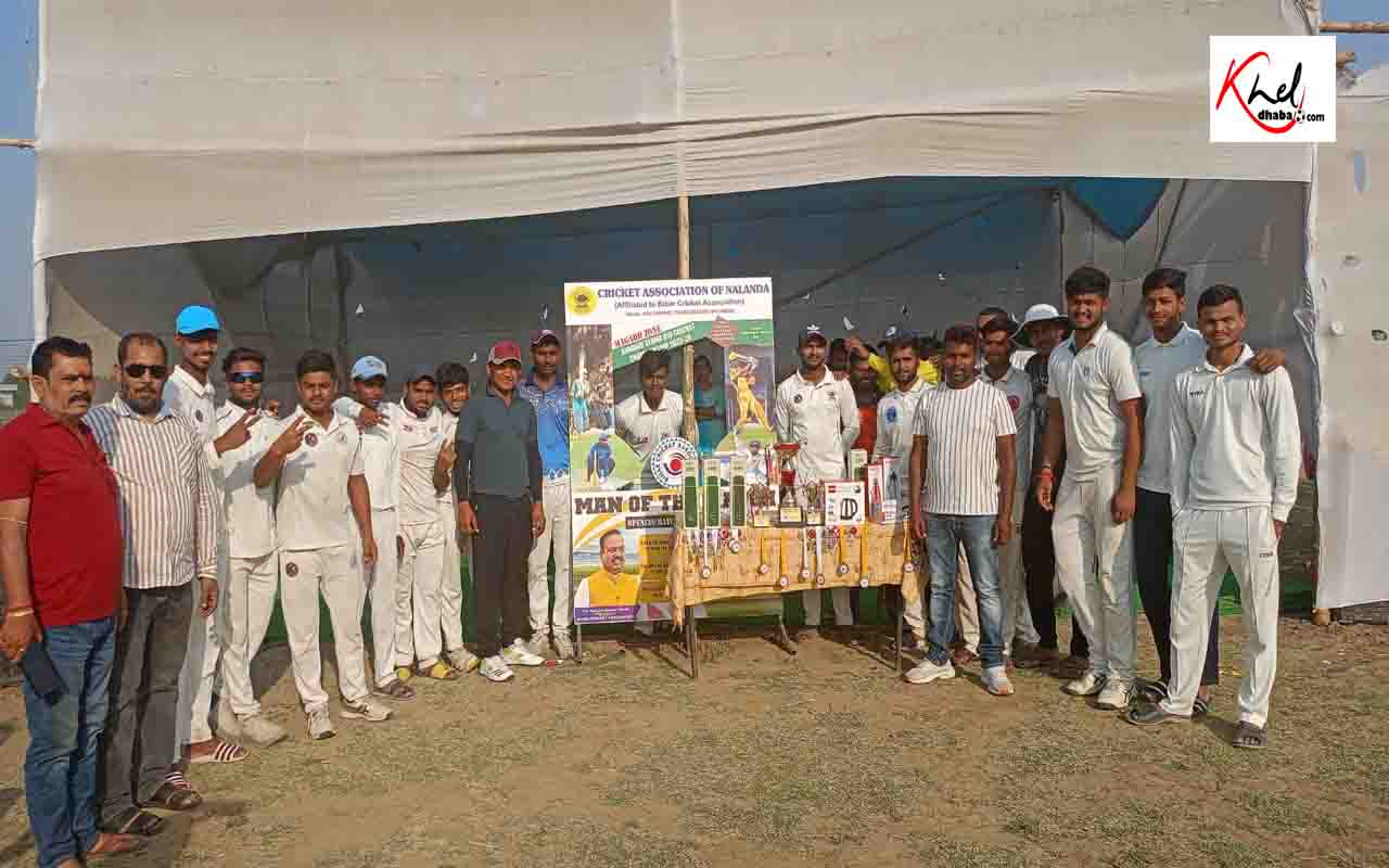 बिहारशरीफ, 8 अप्रैल। नालंदा जिला के एकंगरसराय औंगारी थाना क्षेत्र के महम्मदपुर गांव के खेल मैदान में चल रहे रंधीर वर्मा अंडर-19 क्रिकेट टूर्नामेंट मगध जोन के मुकाबले में नालंदा की टीम ने लगातार चौथी जीत दर्ज कर ग्रुप चैंपियन बनने का गौरव हासिल किया।
