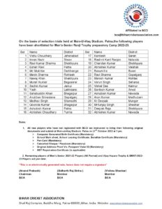विजय हज़ारे 2022-23 टीम के सभी खिलाड़ी और विगत वर्ष रणजी ट्रॉफी, विजय हजारे टूर्नामेंट, सैयद मुश्ताक अली ट्रॉफी के टीम के खिलाड़ी सहित रणजी ट्रॉफी के लिए दिनांक 24 नवंबर को संपन्न हुए ट्रायल में चयनित खिलाड़ी 28 नवंबर को कैंप में रिपोर्ट करेंगे।
