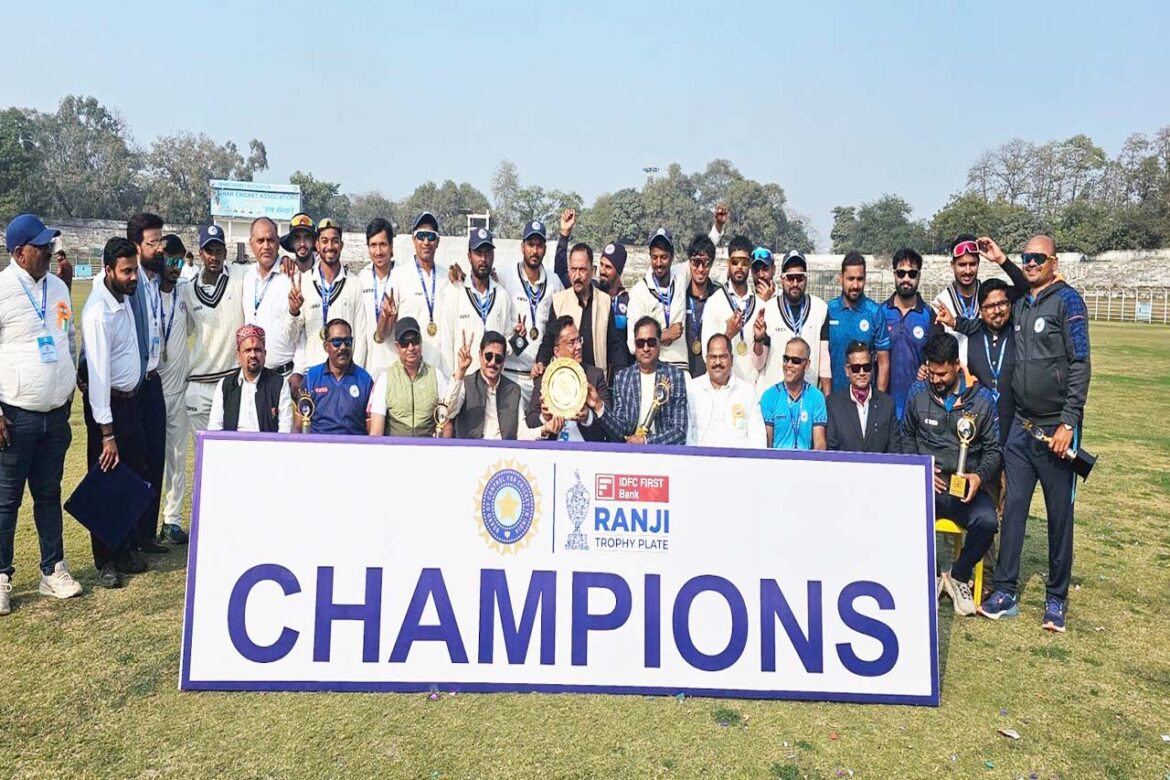 पटना, 26 जनवरी। बिहार ने रणजी ट्रॉफी प्लेट ग्रुप का खिताब अपने नाम कर लिया है। प्लेट ग्रुप के फाइनल में बिहार ने मणिपुर को 568 रनों के भारी अंतर से पराजित किया। खिताबी जीत के साथ ही बिहार ने अगले सत्र में रणजी ट्रॉफी के एलीट ग्रुप में खेलने का भी टिकट पा लिया है।
