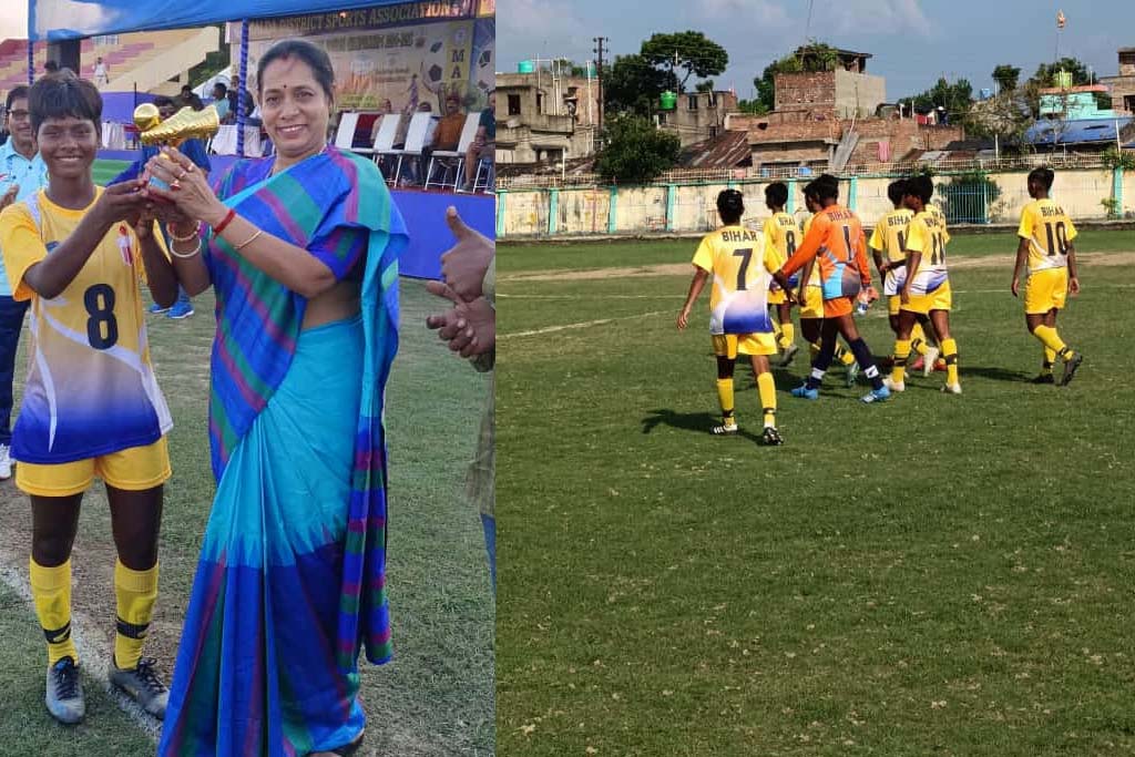 पटना, 6 सितंबर। रिंकी कुमारी चौहान के शानदार चार गोलों की मदद से बिहार ने कर्नाटक को 5-1 से हरा कर राष्ट्रीय सबजूनियर बालिका फुटबॉल चैंपियनशिप Sub Junior Girls’ National Football Championship 2024-25 के सेमीफाइनल में अपनी जगह पक्की कर ली है। सेमीफाइनल में बिहार का मुकाबला झारखंड बनाम पंजाब मैच की विजेता टीम से होगा। रिंकी कुमारी चौहान को बेस्ट प्लेयर ऑफ द मैच का पुरस्कार दिया गया।