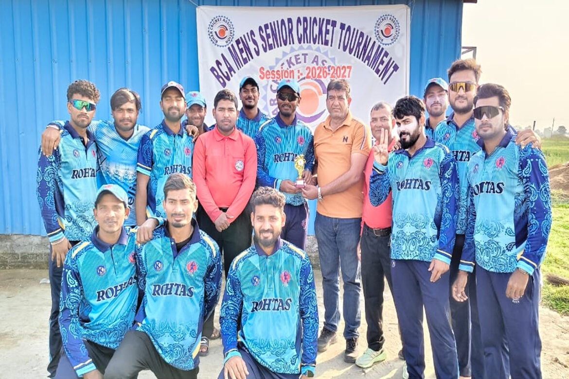 रोहतास की ओर से तरुण कुमार सिंह ने 105 रन की बेहतरीन पारी खेली। उनके अलावा समरजीत कुमार ने 68 रन और विकेटकीपर बल्लेबाज निखिल ने 58 रन का योगदान दिया। मध्यक्रम की साझेदारियों ने टीम को 320 रन के विशाल स्कोर तक पहुंचाया।