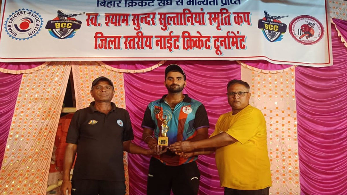 मैन ऑफ द मैच का पुरुस्कार मोहित कुमार को जिला क्रिकेट संघ के सुरेन्द्र नारायण सिंह के हाथों नकद व ट्रॉफी प्रदान किया गया। मैच के अम्पायर स्टेट पैनल अमित रंजन व आलोक कुमार, डिजिटल स्कोरर अनिल कुमार, किशन राय, कॉमनटेटर श्रीमन झा थे।