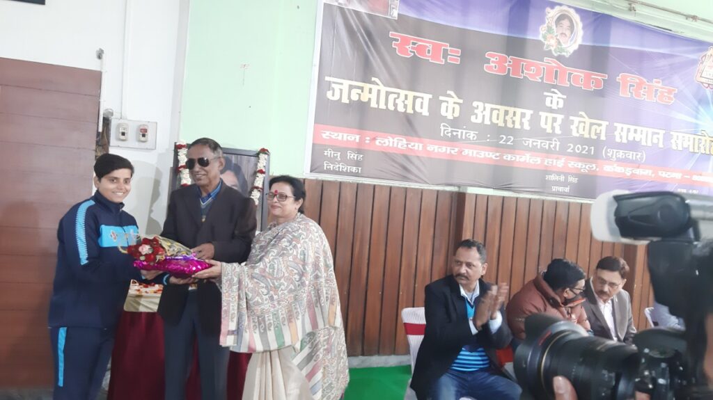 पटना। राजधानी के लोहियानगर माउंट कार्मेल हाईस्कूल, कंकड़बाग में Sports ब्रांड पीआरएस 22 के तत्वावधान में शुक्रवार को आयोजित स्व. अशोक सिंह के जन्मोत्सव के अवसर आयोजित अशोक सिंह मेमोरियल खेल सम्मान समारोह में क्रिकेट की दिग्गज हस्तियों समेत मीडिया जगत की हस्तियों को सम्मानित किया गया।