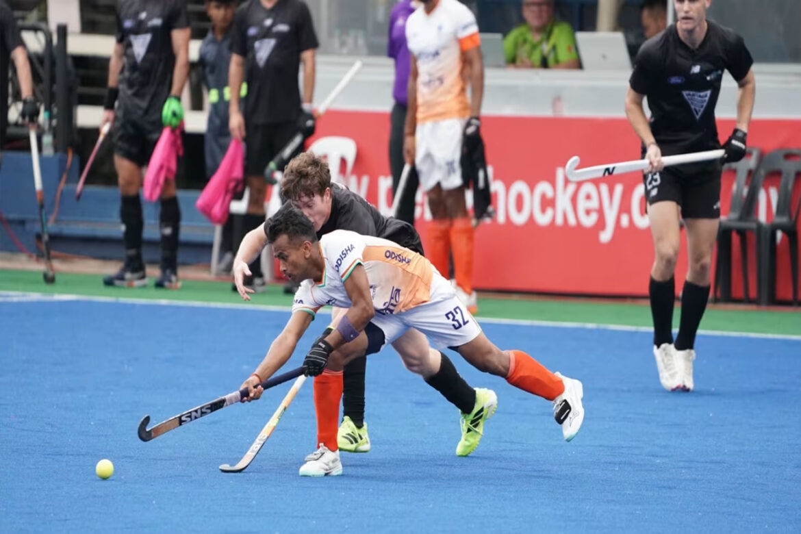 मुकाबले की शुरुआत में न्यूजीलैंड ने मिडफील्ड में दबदबा बनाने की कोशिश की, लेकिन भारतीय डिफेंडरों ने उन्हें कोई मौका नहीं दिया। भारत को पहला अवसर चौथे मिनट में पेनल्टी कॉर्नर के रूप में मिला, जिसे अनुभवी रोहिदास ने गोल में बदल दिया। इसके बाद अभिषेक का शॉट कीवी गोलकीपर ने रोक लिया।