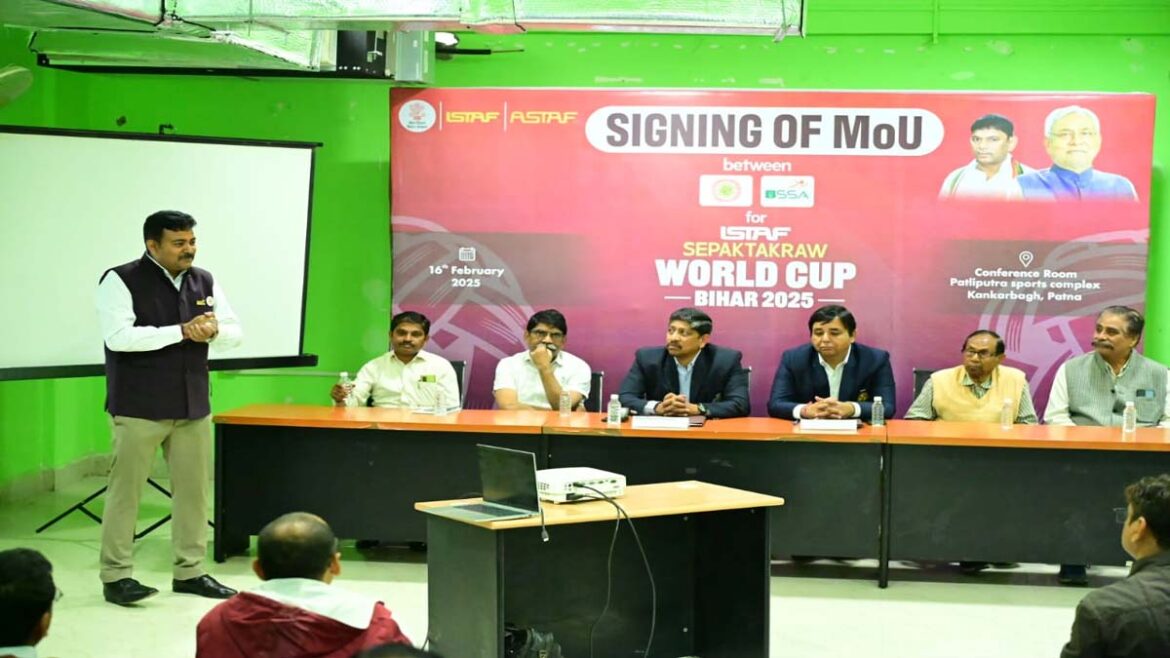 बिहार में इसके समुचित आयोजन के संदर्भ में सेपक टाकरा फेडरेशन ऑफ इंडिया और बिहार राज्य खेल प्राधिकरण के बीच समझौता ज्ञापन पर हस्ताक्षर किया गया। सेपक टाकरा फेडरेशन ऑफ इंडिया के अध्यक्ष योगेन्द्र सिंह दहिया तथा बिहार राज्य खेल प्राधिकरण के महानिदेशक सह मुख्य कार्यकारी अधिकारी रवीन्द्रण शंकरण ने इस ऐतिहासिक समझौते पर हस्ताक्षर किया जिसके बाद बिहार के पटना में सेपक टाकरा वर्ल्ड कप के आयोजन की पुष्टि हो गई।