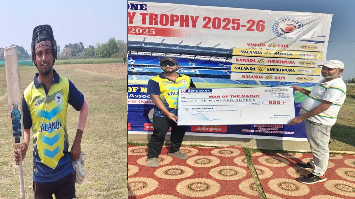 स्थानीय नालंदा क्रिकेट एकेडमी ग्राउंड पर खेले गए इस मुकाबले में टॉस नालंदा ने जीता और पहले बैटिंग करने का फैसला किया निर्धारित 50 ओवर में 7 विकेट पर 534 रन का विशाल स्कोर खड़ा किया। सिद्धार्थ कुमार को छोड़ दीजिए जो भी बैटर नालंदा की ओर से खेलने सबों ने शेखपुरा के गेंदबाजों की क्लास लगाई।