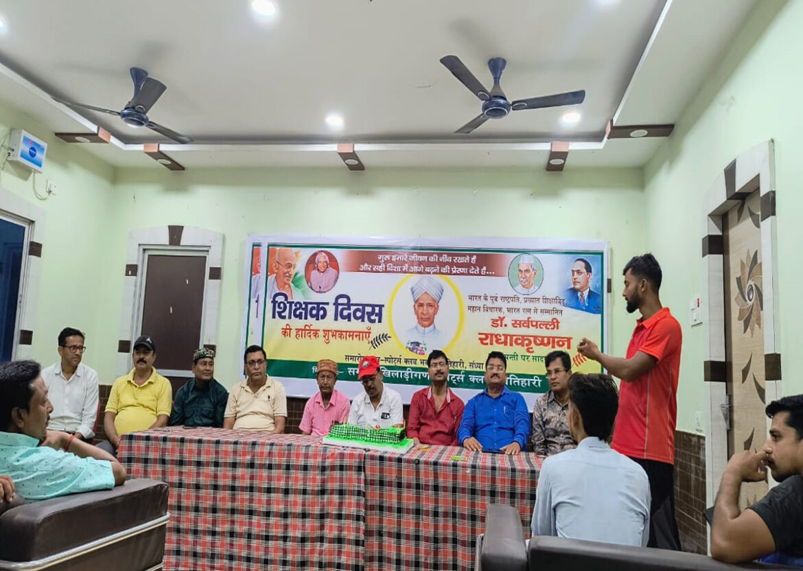 मोतिहारी, 5 सितंबर। स्थानीय स्पोर्ट्स क्लब में शुक्रवार को फुटबॉल एवं क्रिकेट खिलाड़ियों ने मिलकर भारत के पूर्व राष्ट्रपति, महान विचारक और भारत रत्न से सम्मानित डॉ. सर्वपल्ली राधाकृष्णन की जयंती पर शिक्षक दिवस मनाया। इस अवसर पर बड़ी संख्या में शिक्षक गण और सीनियर खिलाड़ी उपस्थित रहे।