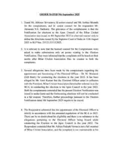 शिकायतकर्ताओं की शिकायत यह है कि बिहार क्रिकेट संघ की शीर्ष परिषद के चुनावों की अधिसूचना 4 सितंबर 2025 को जल्दबाजी में जारी की गई ताकि भारत के सर्वोच्च न्यायालय द्वारा 12 अगस्त 2025 को एसएलपी संख्या 21132-21133/2025 में जारी निर्देशों को नकारा जा सके। शिकायतकर्ताओं द्वारा वर्ष 2022 में चुनाव कराने के लिए निर्वाचन अधिकारी डॉ. एम. मोदस्सिर (सेवानिवृत्त आईएएस) की नियुक्ति और कार्यप्रणाली के संबंध में कई आरोप लगाए गए हैं। अमित कुमार द्वारा आरोप लगाया गया है कि निर्वाचन अधिकारी ने वर्ष 2022 में शीर्ष परिषद के चुनाव कराने में बिहार क्रिकेट संघ के अध्यक्ष के साथ मिलीभगत से काम किया। दोनों शिकायतकर्ताओं ने तर्क दिया कि वर्तमान चुनाव अधिसूचना अत्यधिक जल्दबाजी में जारी की गई थी और आगामी चुनाव निष्पक्ष तरीके से नहीं होंगे। इसलिए, 4 सितंबर 2025 की चुनाव अधिसूचना के अनुसार आगे की कार्यवाही पर रोक लगाने की आवश्यकता है।